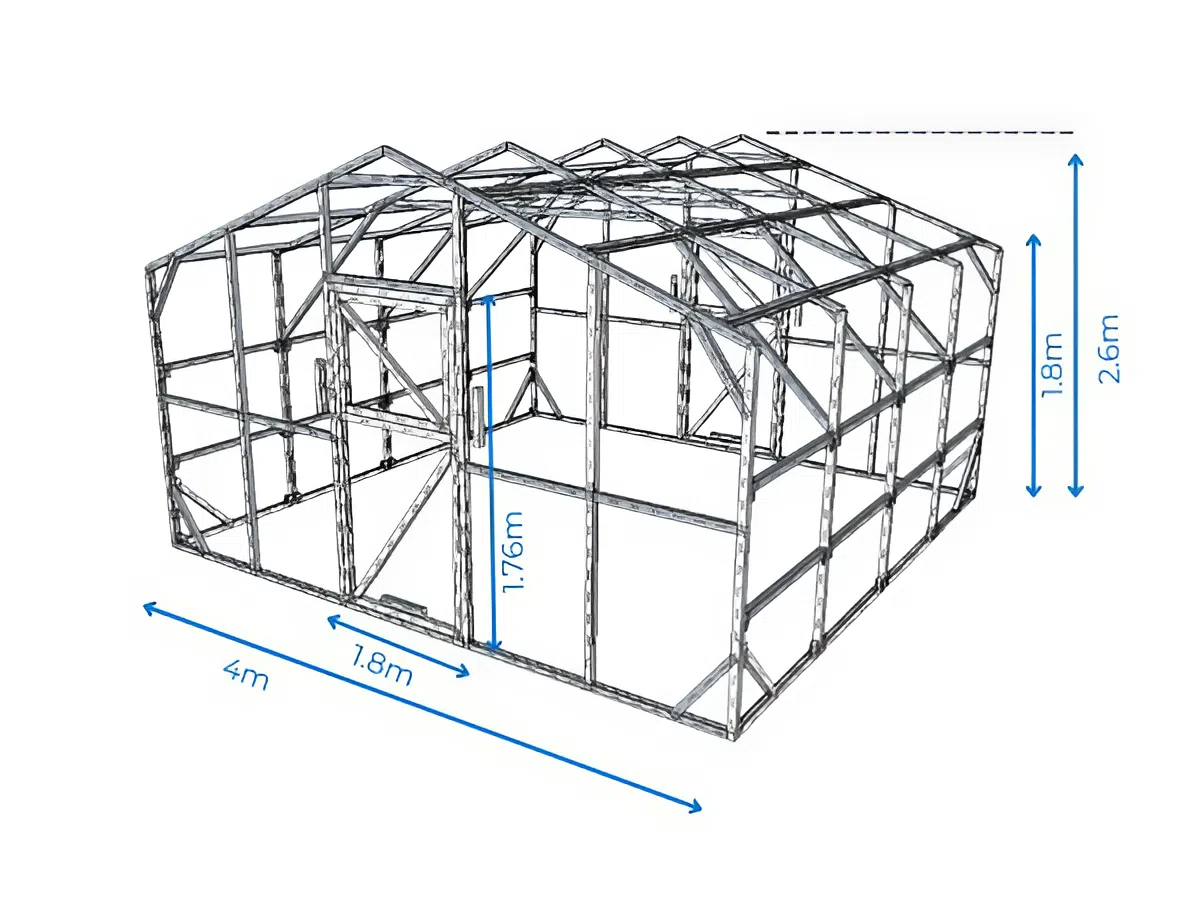 Rama szklarni wykonana jest z ocynkowanych profili stalowych o wysokiej odporności na korozję.