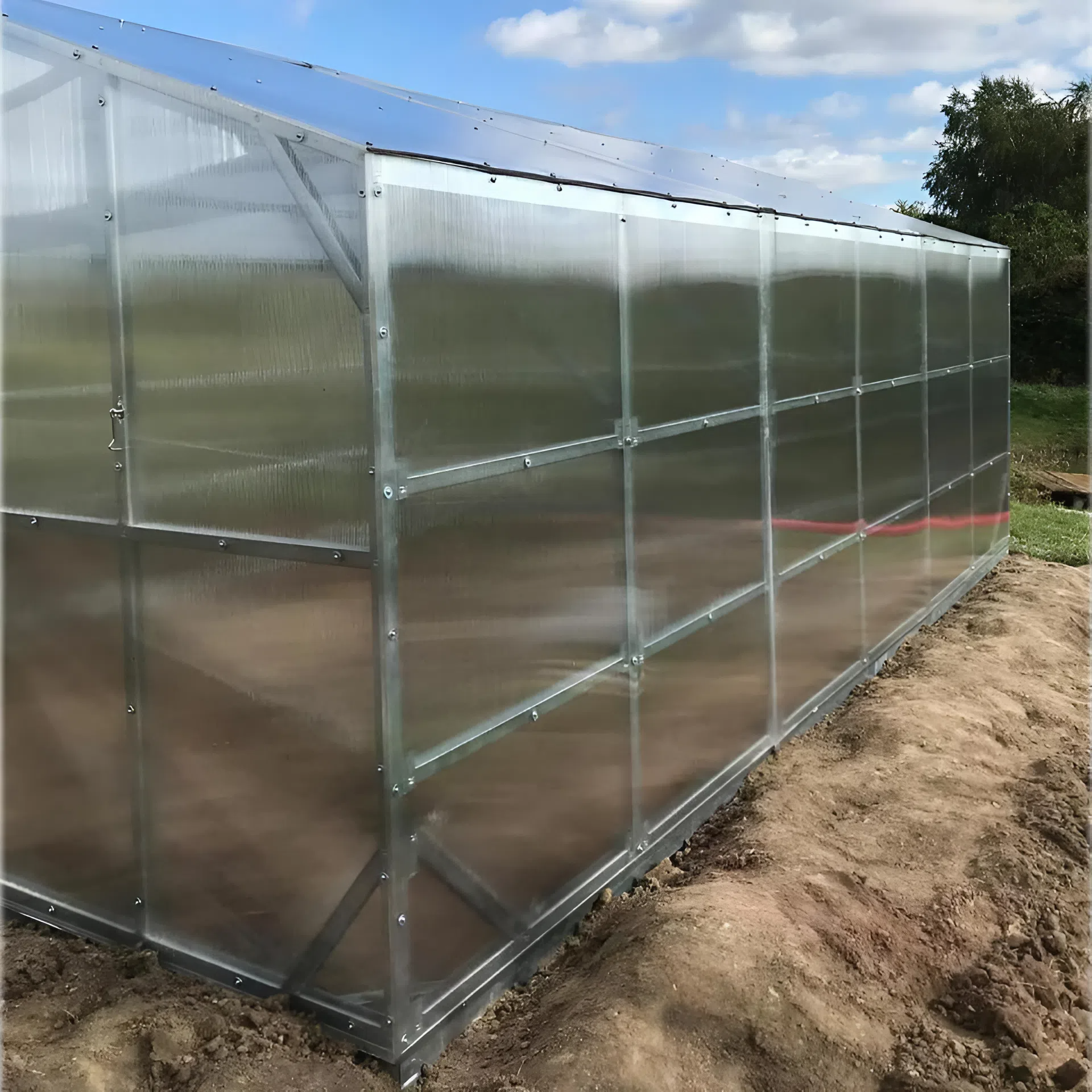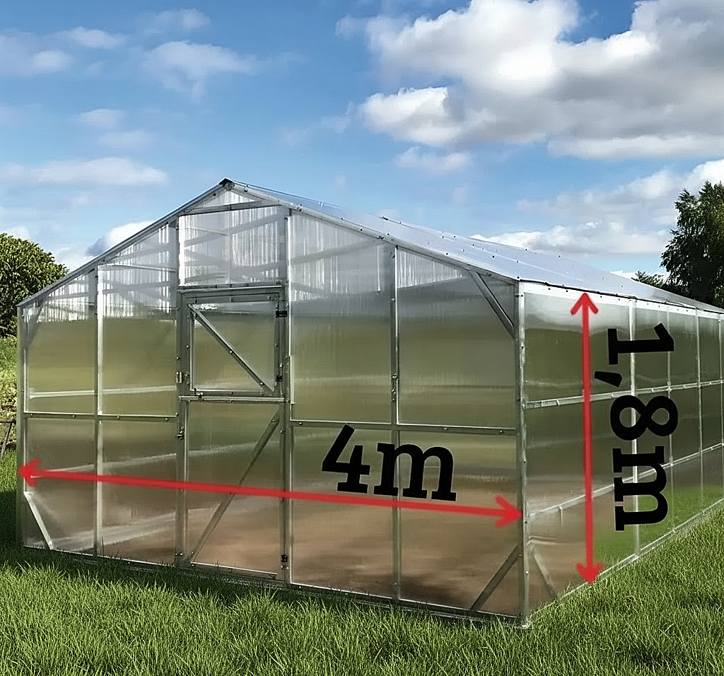 Szklarnia jest dostarczana z poliwęglanem o grubości 4 mm lub 6mm, które są wystarczająco mocne i odporne na ciepło dla szklarni „sezonowej”.