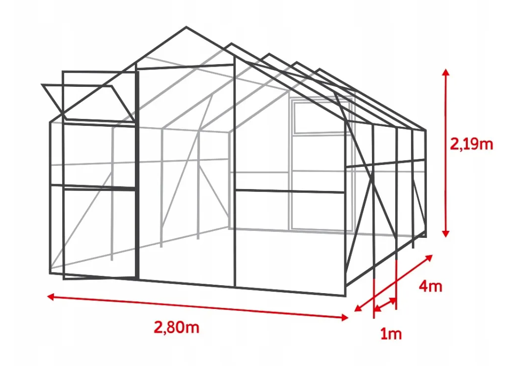• W komplecie wszystkie niezbędne elementy do montażu szklarni, szklarnia łatwo się montuje kotwami do ziemi bez fundamentu