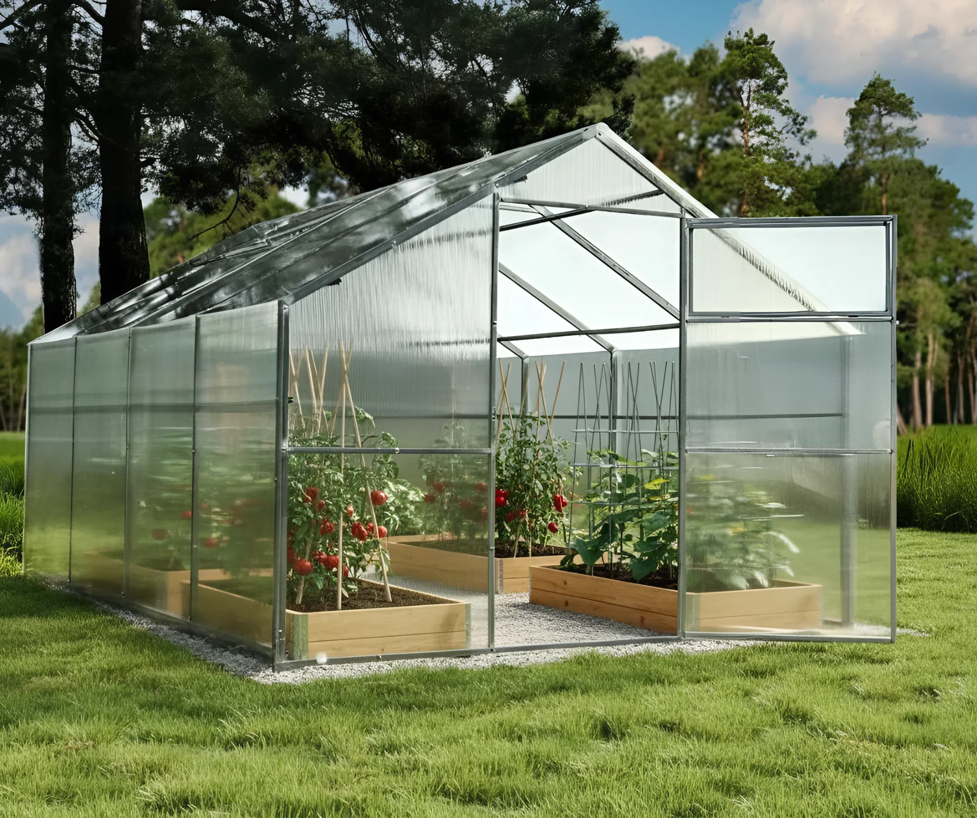 • Poliwęglan o grubości 4mm lub 6mm, podwójnie chroniony przed promieniowaniem UV, zapewnia najlepsze warunki do uprawy bogatych upraw;