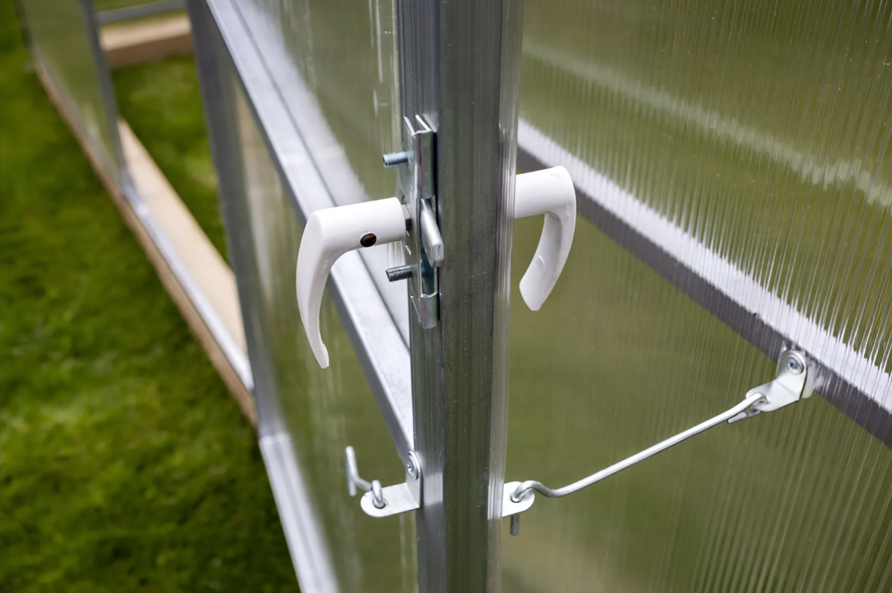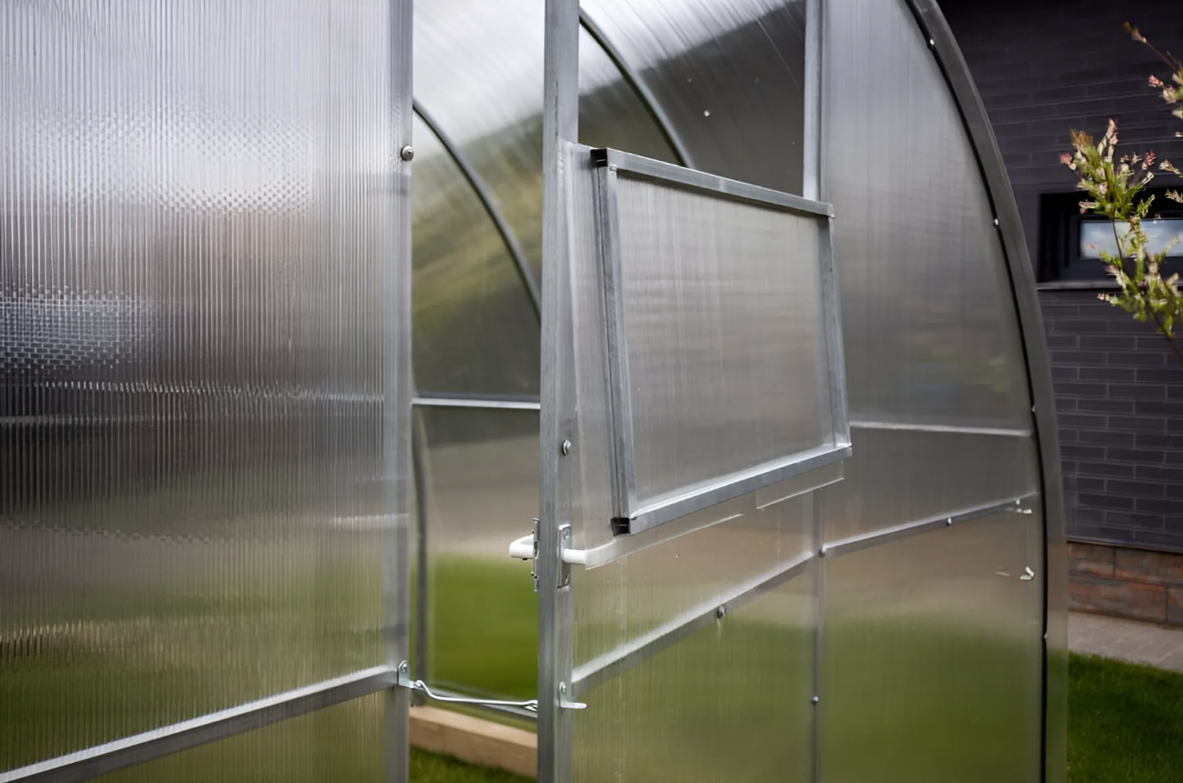 Szklarnia jest dostarczana z poliwęglanem o grubości 4 mm lub 6mm, które są wystarczająco mocne i odporne na ciepło dla szklarni „sezonowej”.