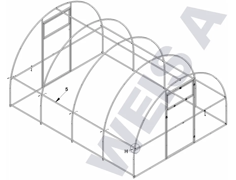 Rama szklarni wykonana jest z ocynkowanych profili stalowych o wysokiej odporności na korozję.