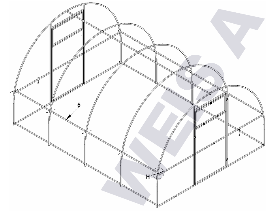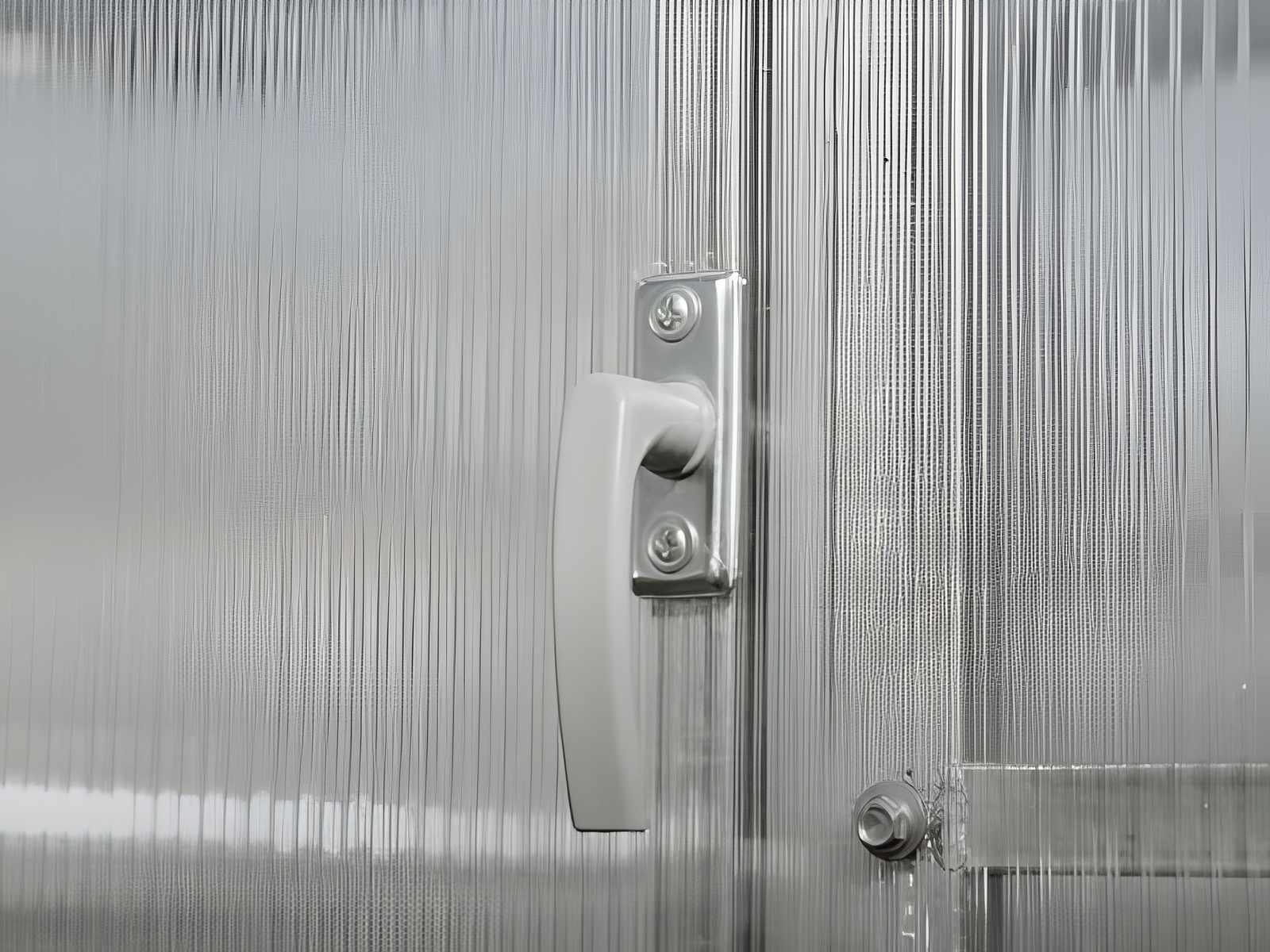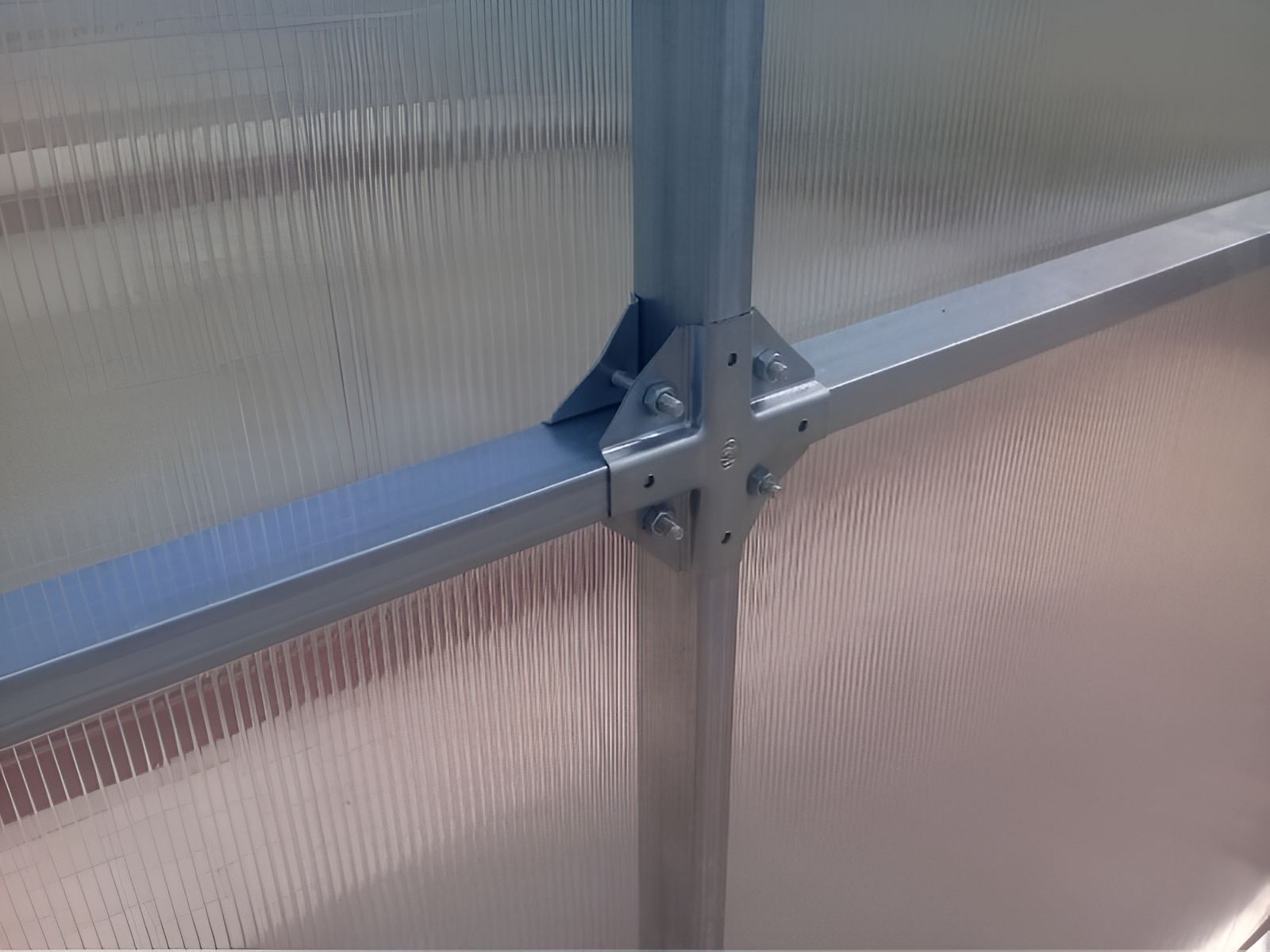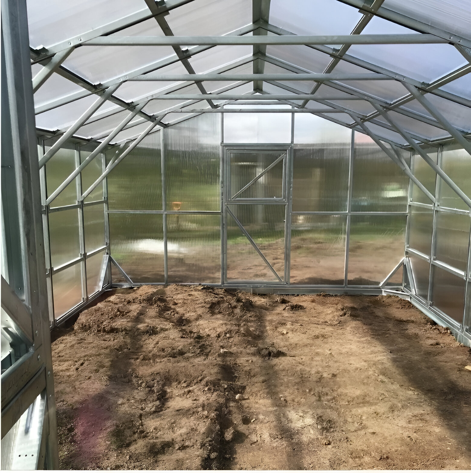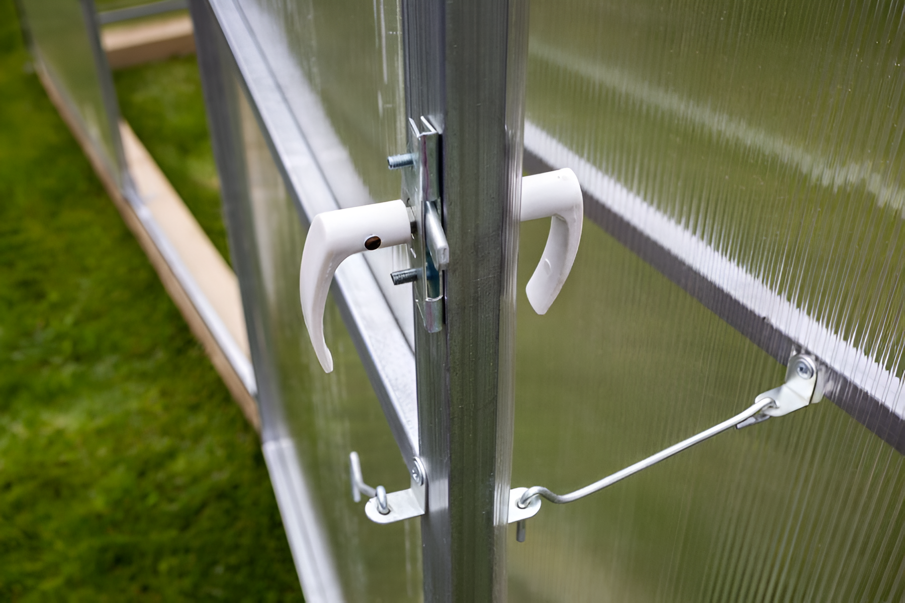 Poliwęglan o grubości 4 lub 6 mm z ochroną przed śniegiem i promieniowaniem UV, dwoje drzwi i dwoje okien do wentylacji.